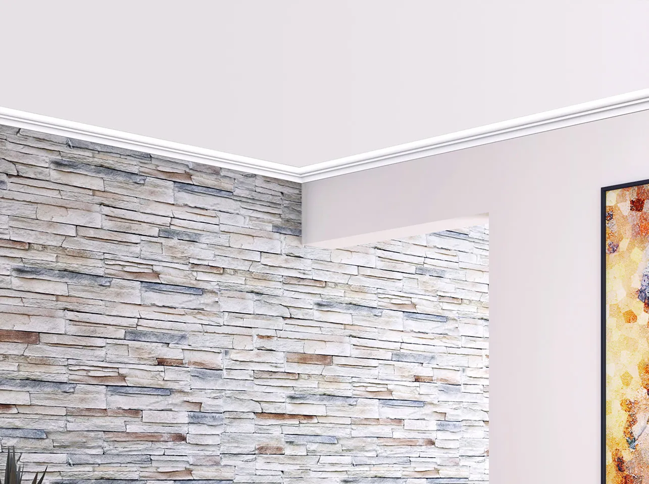 El perfil UP25 de UPSOLU tiene un diseño elegante y con relieves, lo que lo convierte en uno de los más buscados para pequeños ambientes. La presencia de relieves circulares en el diseño del perfil UP26 ayuda a disimular y cubrir pequeñas imperfecciones o irregularidades que puedan existir en la unión entre la pared y el techo. Al instalar esta moldura, se logra un acabado más uniforme y estéticamente agradable en el espacio, mejorando la apariencia del ambiente y ocultando posibles discrepancias que puedan existir en la junta. Exacto, la moldura UP26 de UPSOLU también es recomendada para acabados donde existan irregularidades en la junta entre el techo y la pared, ya que proporciona un acabado suave y estético en estas áreas.